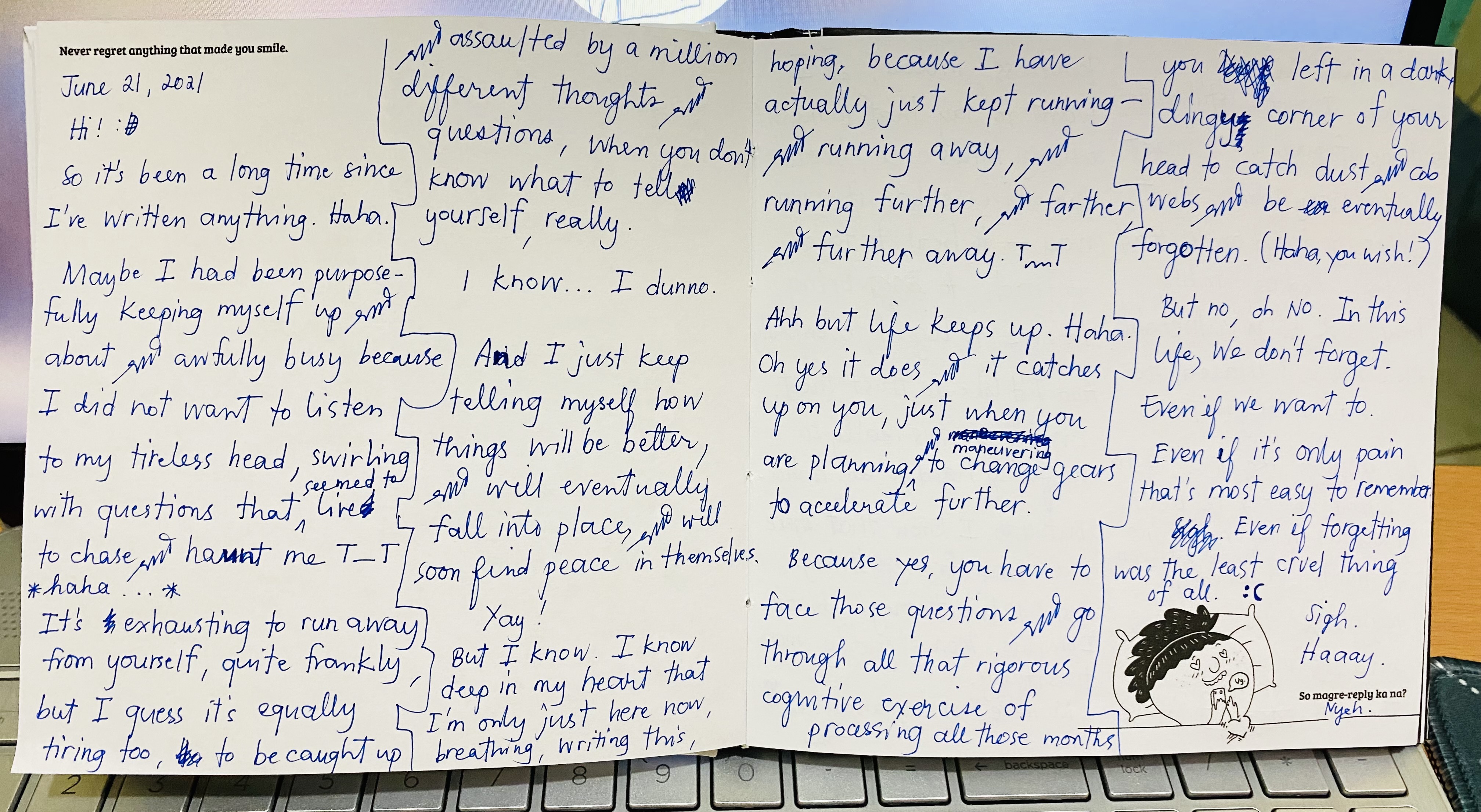 And I’m thinking that maybe I had been purposefully keeping myself up and about, and awfully busy because I did not want to listen to my tireless head, swirling with questions that seemed to have had a life of their own just so they can chase and haunt me forever. π haha